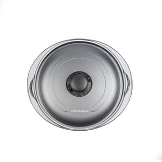 Il coperchio Vulkanica, protagonista indiscusso nella famiglia delle pentole, si erge come un'opera d'arte funzionale, trasformando il nostro concetto di cucina. Costruito con gli stessi materiali d'eccezione delle pentole Vulkanica, questo coperchio si distingue per le sue molteplici funzioni e la capacità di rivoluzionare l'approccio alla cottura.